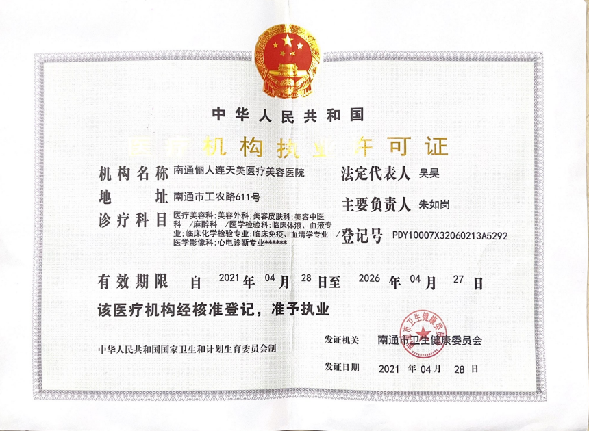 南通儷人連天美醫療美容醫院是與著名的醫療美容集團合作建立的醫院,醫院提供高品質的醫療美容服務。2008年,南通儷人連天美醫療美容醫院落戶南通,成為由南通衛生局審批的專業醫療美容醫院。南通儷人連天美醫療美容醫院,特別設有專業的整形美容科、皮膚美容科和微創美容科三大科室,致力于為廣大求美者提供全方位的醫療美容服務。南通儷人連天美醫療美容醫院為求美者建立個人終生美麗檔案,一對一進行細致服務。 11年來,南通儷人連天美醫療美容醫院,不斷引進先進設備,不斷完善醫美技術,一批優秀、專業而穩定的醫生團隊,為無數求美者鑄就美麗夢想。